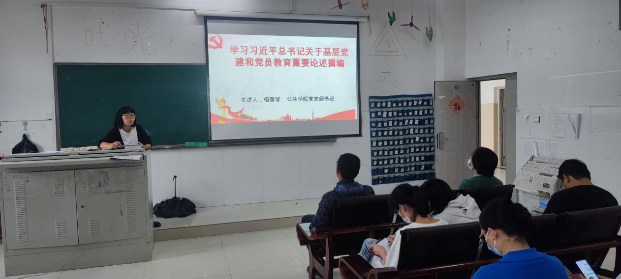 为深入开展学习贯彻习近平总书记关于基层党建和党员教育重要论述,发挥基层党建的战斗堡垒作用,以高质量基层党建引领教育高质量发展,2022年9月2日,公共学院党支部组织全体党员开展“学习习近平总书记关于基层党建和党员教育重要论述摘编”主题党日活动。本次活动由党支部书记杨丽琴主持并带领学习。