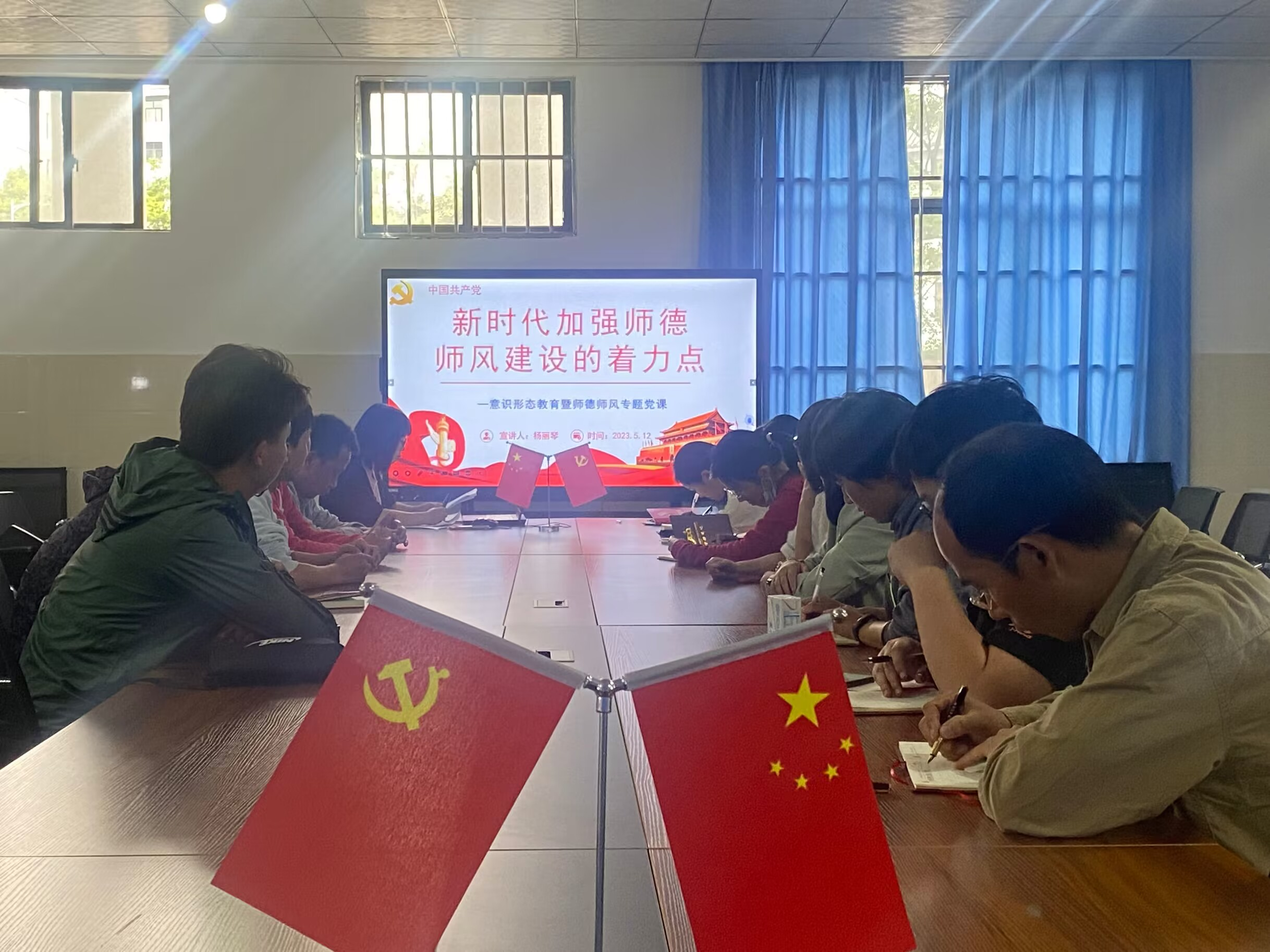 会上,杨丽琴同志强调意识形态工作党的一项极其重要的工作,并以《新时代加强师德师风建设的着力点》为题,带领全体教师共同学习了习近平总书记关于师德师风的重要论述、新时代高校教师职业行为十项准则,她强调全体教党员教师要坚守育人初心,弘扬师德风尚;要做坚定的马克思主义无神论者,严守党章规定,坚定理想信念,牢记党的宗旨,防止宗教的侵蚀;全体教师务必坚持“学术无禁区,课堂有纪律”和“知识无国界,教师有国籍”的原则,站好讲台,守土有责、守土尽责,共同筑牢学校意识形态工作的这一主阵地。随后全体党员同志签署《教师师德师风规范责任书》和《共产党员不得信仰宗教承诺书》。