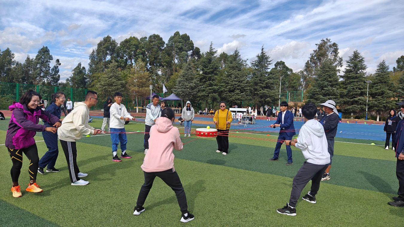 为丰富公共学院教职工的文体生活,增强教职工身体素质,加强团队精神文明建设,提高全体教职员工的凝聚力、向心力,以学校冬季田径运动会为契机,公共学院工会小组组织学院全体教师开展了“同心击鼓”、“旱地龙舟”等趣味运动会团建活动。