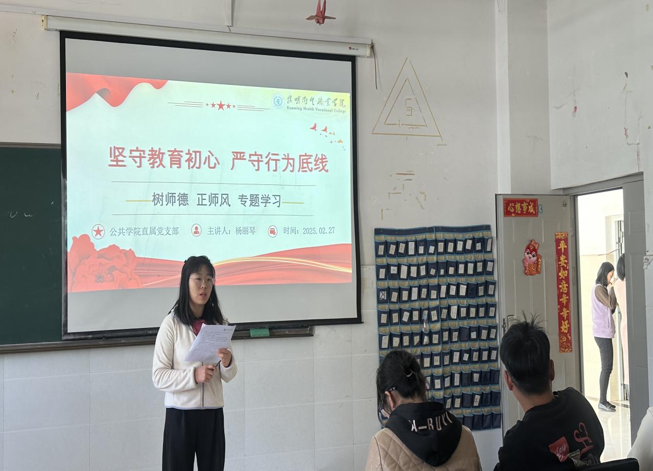 为深入贯彻党的教育方针,强化党建引领,进一步提升教师队伍的思想政治素质和加强师德师风建设,筑牢学校“立德树人、教书育人”意识形态主阵地,2025年2月27日,公共学院召开春季学期全体教师会议。党支部书记杨丽琴在会上讲话,对全体教师提出了新的要求和期望。会议首先聚焦于重温学...