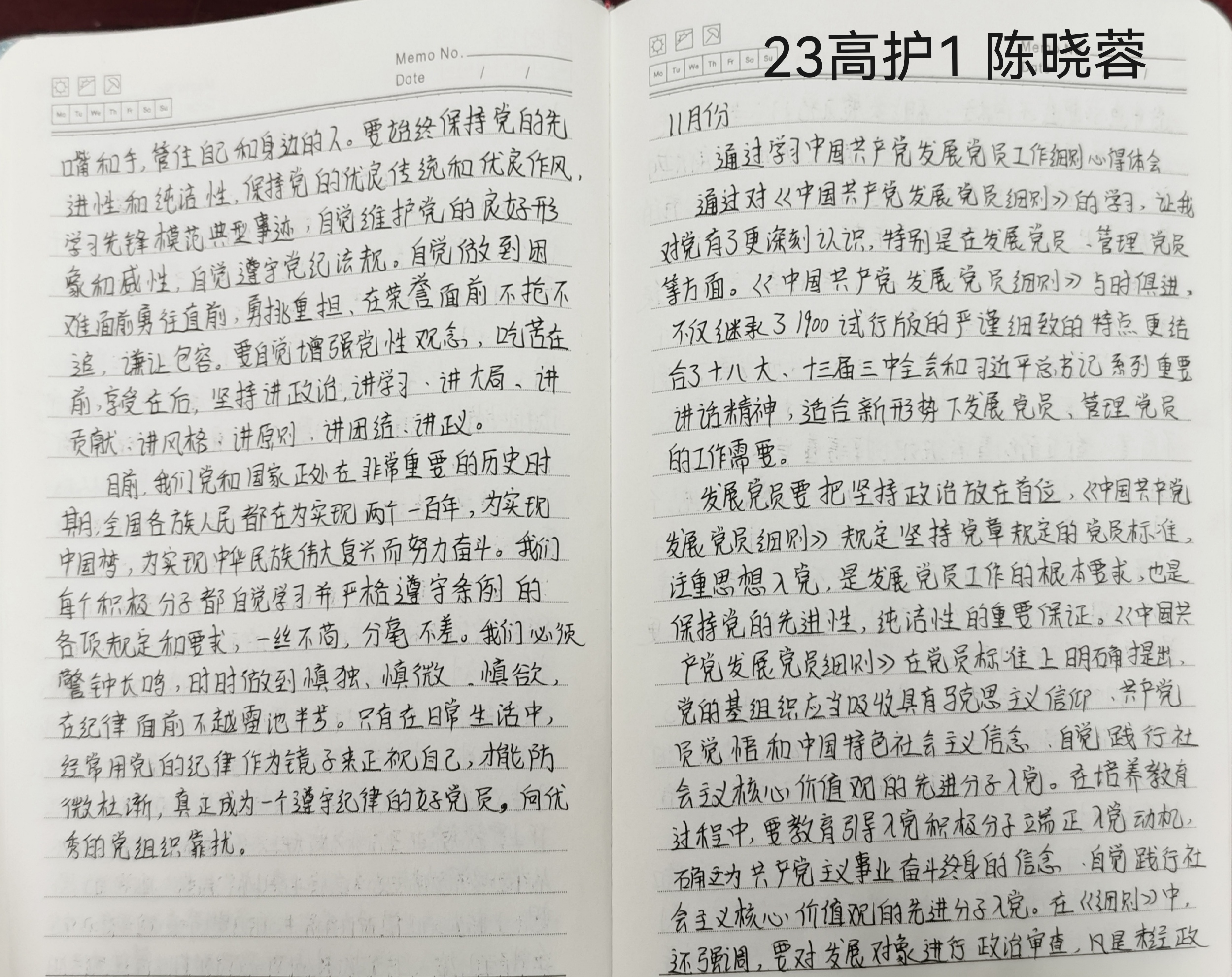 此次活动是加强支部学习型党组织的一项具体举措,既是一次对党员和入党同学的学习笔记的检查评比,又是一次规范学习笔记的经验交流,更是一次督促党员和同学们加强知识学习、提升理论素养,随学随记、常温常新的思想提升。