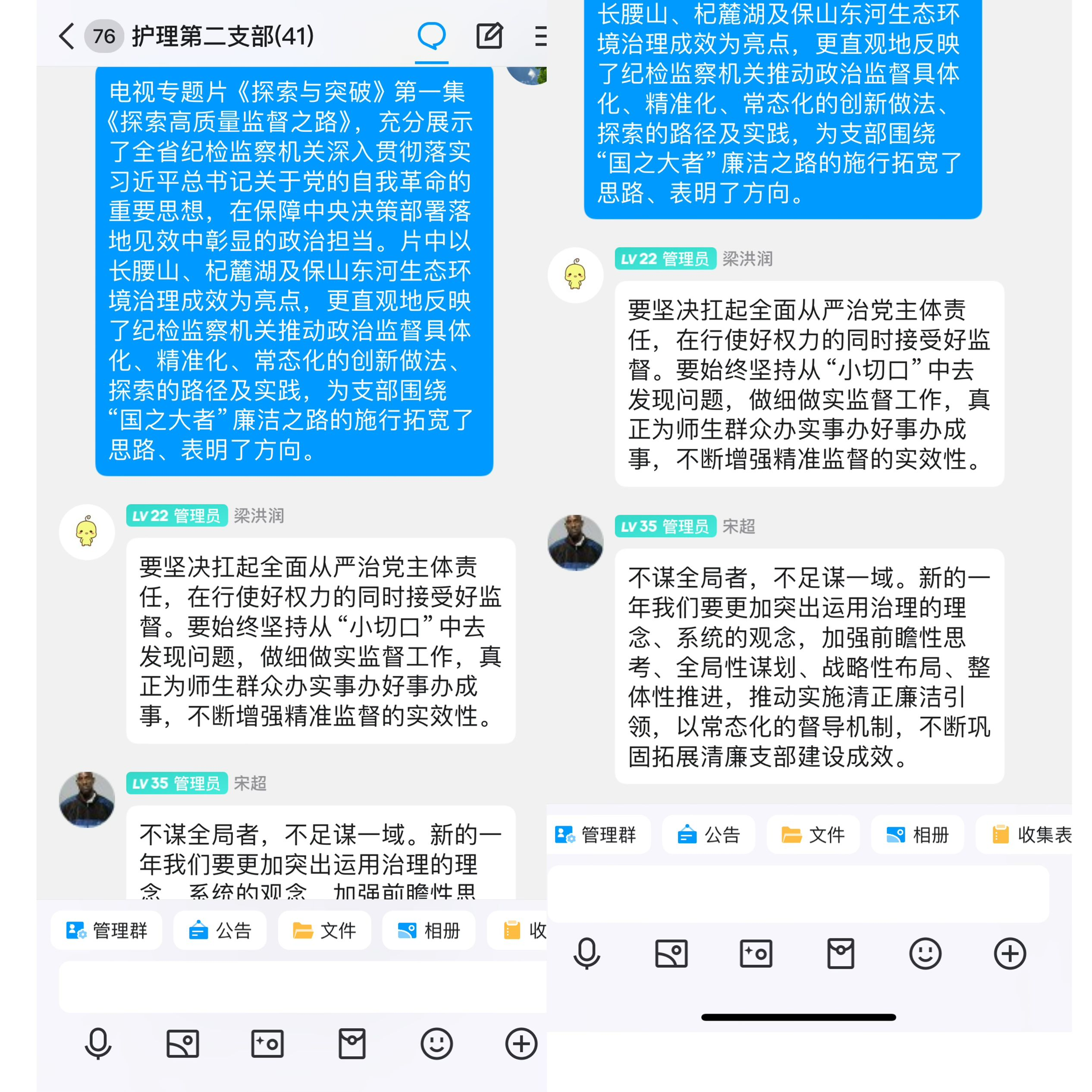 2024年2月20日-22日,由云南省纪委监委宣传部与云南广播电视台联合摄制的三集电视专题片《探索与突破》开播以后,beat365平台官方网站护理第二党支部第一时间组织支部广大党员同志通过网络、电视和手机客户端等媒体收看该节目,并迅速在支部范围内掀起热议,同志们纷纷发表感想。