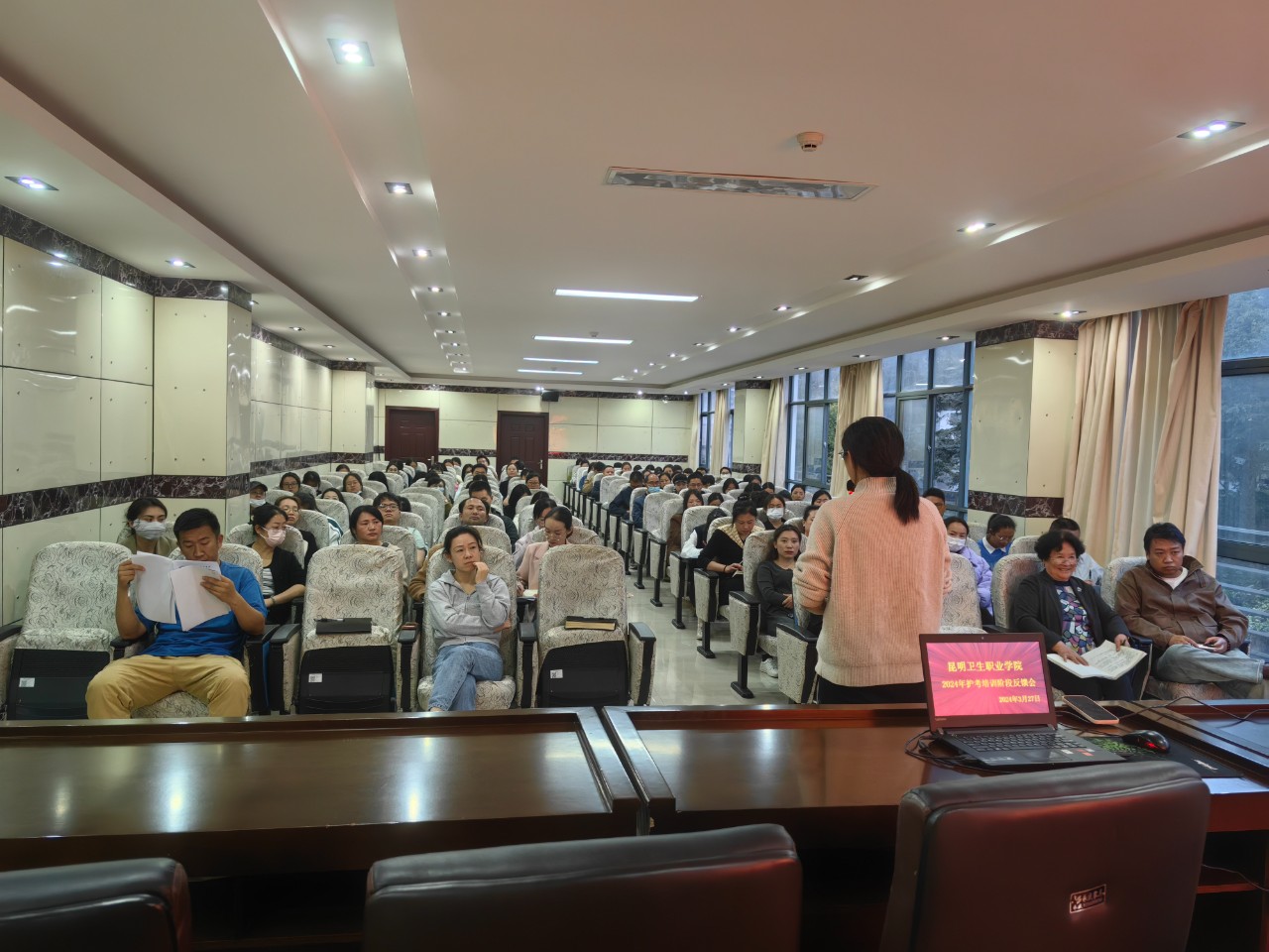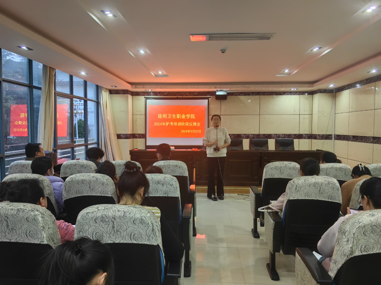 经过五个星期的努力奋战,2024年护考培训已经完成了第一部分护考精讲课程,为了让全体师生稳扎稳打,继续完成护考培训的复习串讲、试题精讲课程,3月27日19:30在beat365行政楼四楼会议室召开2024年护考培训阶段反馈会。beat365平台官方网站副院长李玉晶,教务处处长孟州令,继续教育学院院长王思权,大学生工作部部长郭佶颖,护理学院院长蒋淑昆、副院长周璇、学管副院长王宇超,护理专业全体教师及班主任参加本次会议。