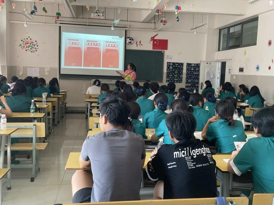 为深入学习贯彻习近平总书记关于办好思想政治理论课的系列重要讲话精神,切实发挥好思想政治理论课主渠道、主阵地作用,用习近平新时代中国特色社会主义思想铸魂育人,也进一步强化中国特色社会主义大学的政治属性,推动护理学院“三全育人”改革工作的全面推进。2024年5月6日下午,护理学院第一党支部蒋晓羽书记走进思政课堂,以“关注全国两会,贯彻两会精神”为课题,给学生们上了一堂生动的思政课,勉励全体师生厚植家国情怀,以蓬勃激昂的精神认真学习,培养锻炼自身过硬的本领。
