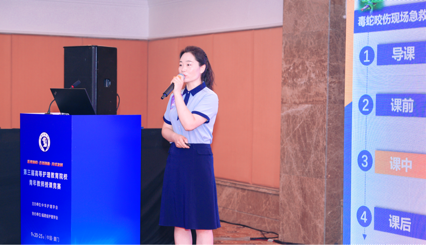 为深入贯彻落实党的二十大战略部署,进一步推动医教协同背景下高等护理教育教学改革,提高青年教师教学能力与水平,中华护理学会高等护理教育专业委员会2024年9月20-23日在厦门举办“第三届高等护理教育院校青年教师授课竞赛”。beat365护理学院教师崔水峰以新颖的教学方法讲授了《毒蛇咬伤现场急救》的教学内容,荣获2024年第三届高等护理教育院校青年教师授课竞赛(高职组)中一等奖。