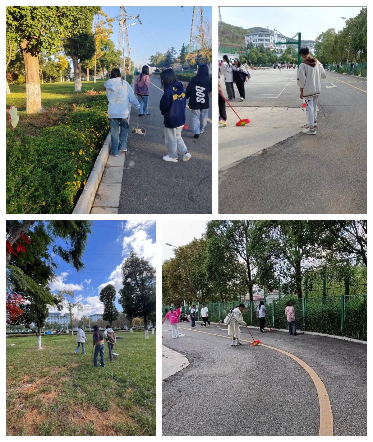 图一:学生积极参与校园卫生清扫,夯实劳动育人根基