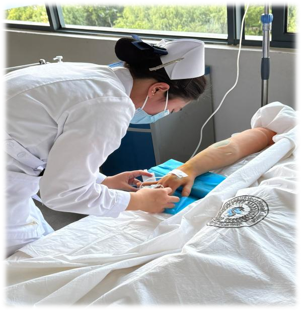 备物组在护理学院506同步展开“隐形战斗”。备物老师带领团队严格执行“10分钟备物标准”,从急救物品清点到模拟静脉输液的血管模型调试,每个环节都力求与临床场景无缝对接。正是学院“贴近临床、服务实战”教学理念的生动体现。