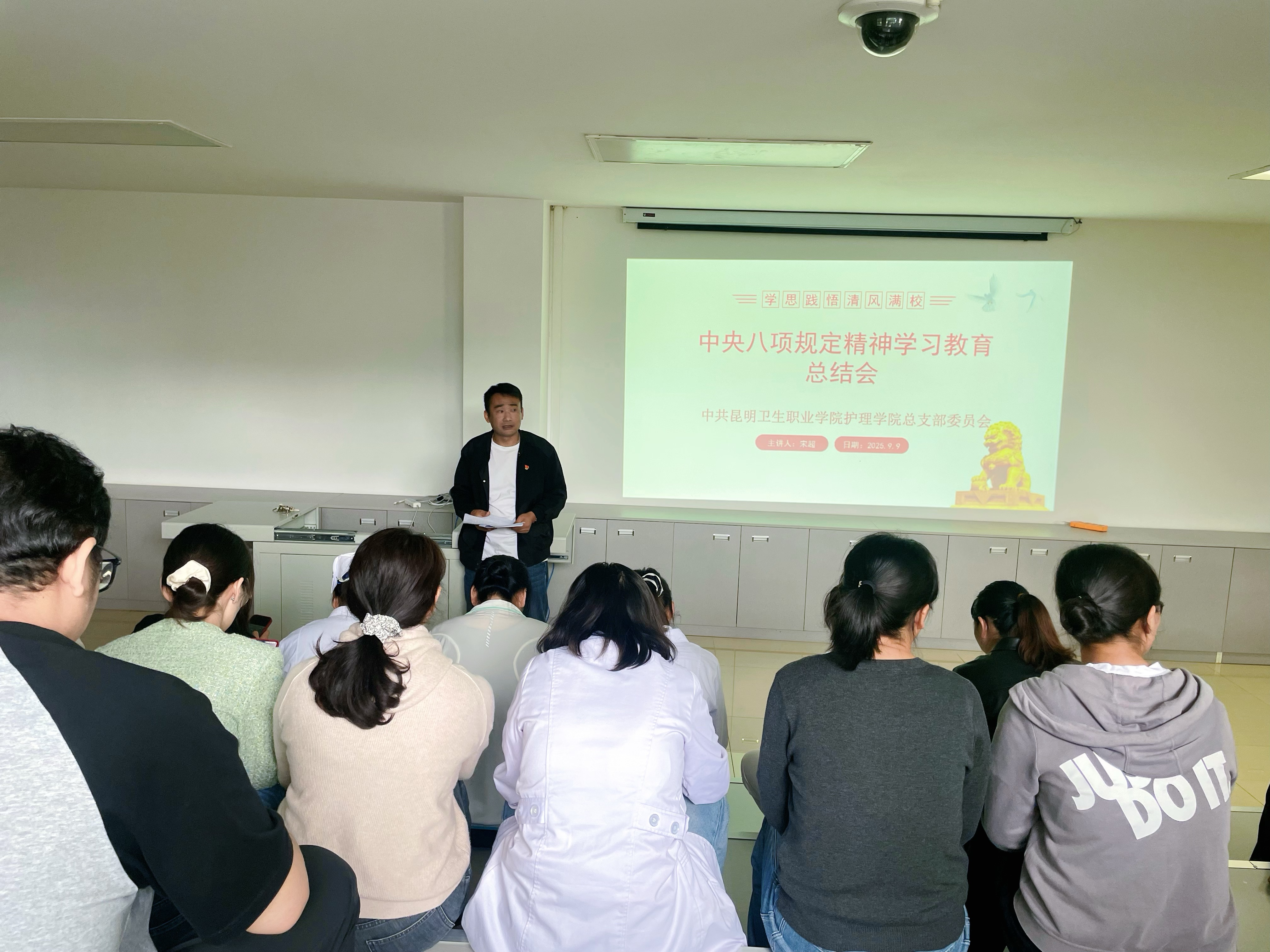9月9日,护理学院党总支组织召开深入贯彻中央八项规定精神学习教育工作总结大会,全面回顾学院在落实中央八项规定精神、推进党风廉政建设方面的工作成效,并对下一阶段工作进行部署。全体党员参加了会议。