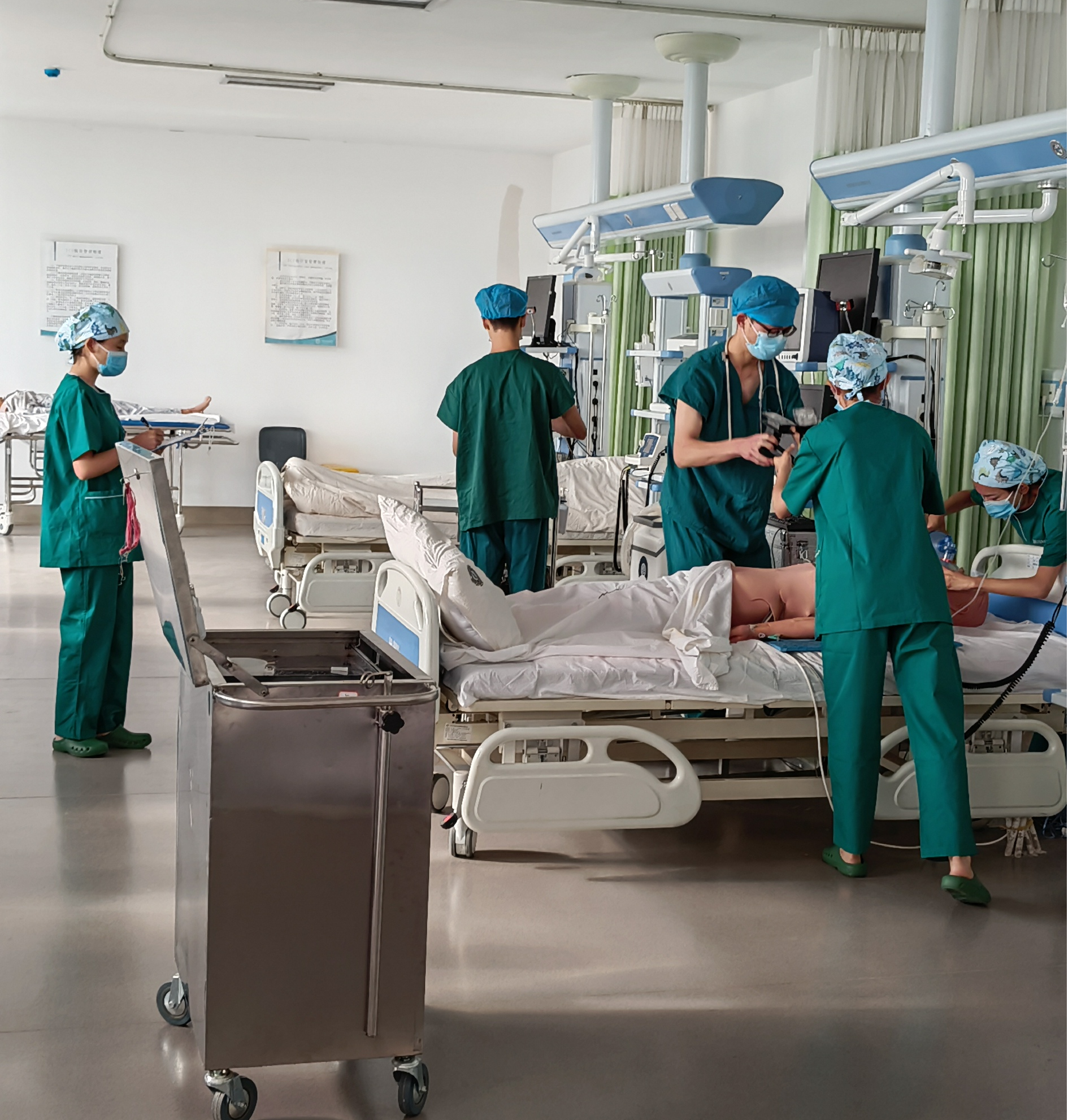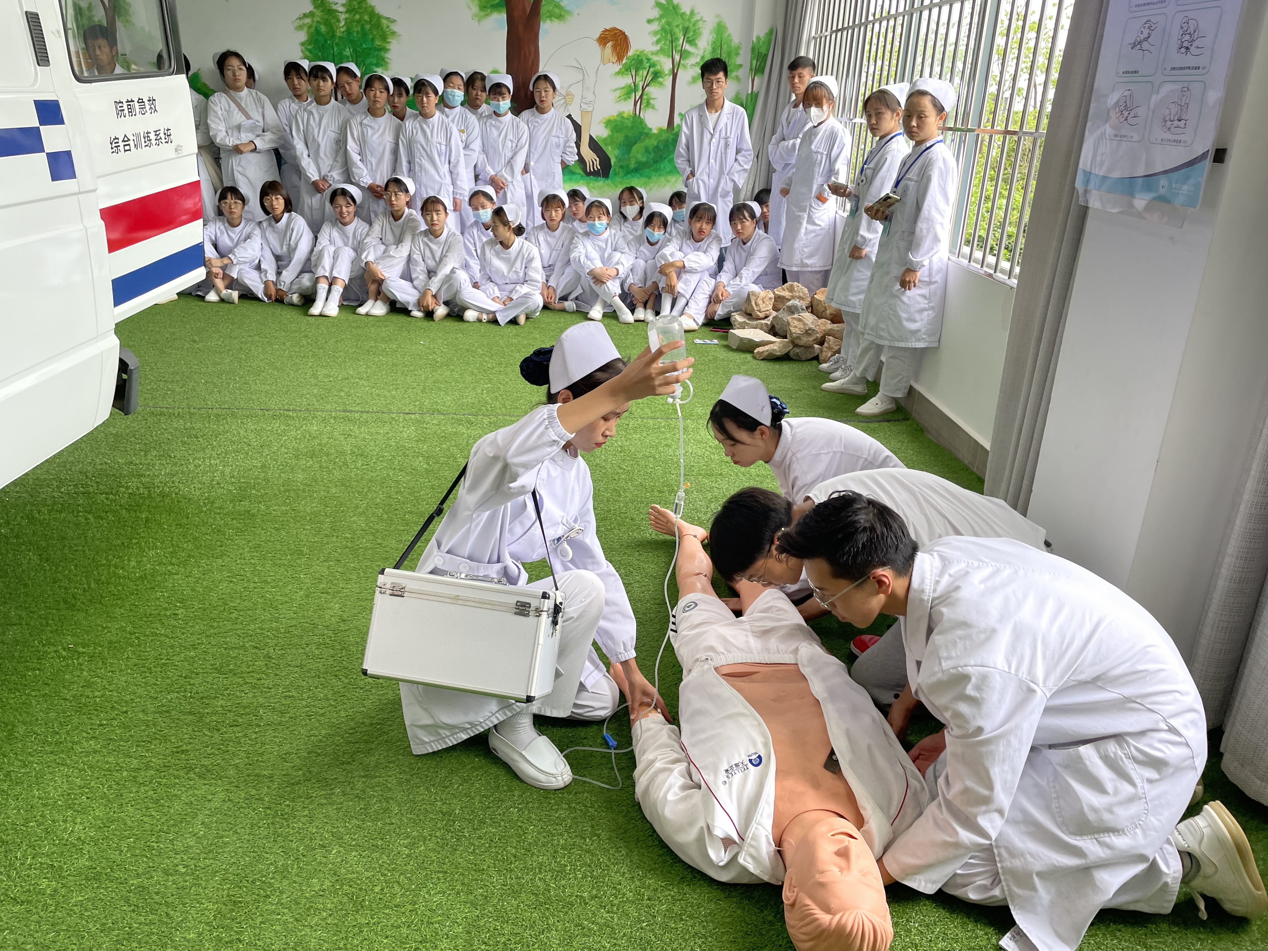 活动当天上午,护理学院分别开展了野外急救综合演练、院前急救、ICU情景模拟、出入院护理、婴儿抚触、无菌技术操作等职业技能情景展示宣传活动。2020级高职护理、助产班,2019级五年制护理、助产班及部分其他专业同学进行了观摩。