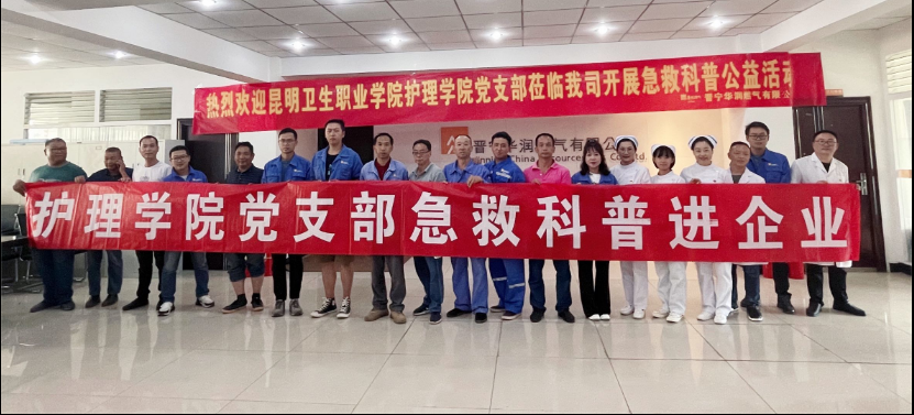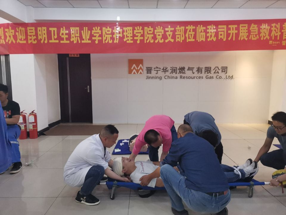 5月28日下午,由急救教研室和成人护理教研室抽调6名同志组成的急救科普志愿服务团队在beat365平台官方网站护理学院党支部副书记尹培同志的带领下,前往晋宁华润燃气有限公司,为公司员工开展了一场急救知识与技能培训讲座。