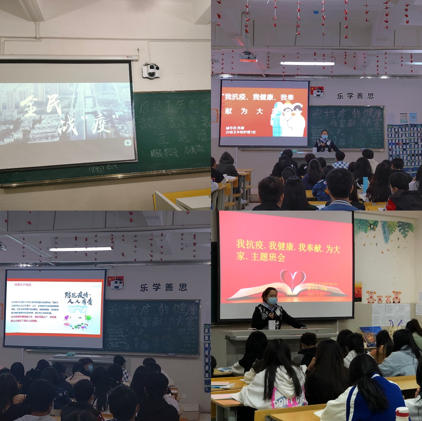 为深入贯彻习近平总书记关于新冠肺炎疫情防控系列重要指示精神,认真落实上级和学校疫情防控工作各项要求,引导广大师生从我做起,养成良好生活习惯,严格遵守各项疫情防控要求,为疫情防控贡献力量,按照中共云南省委教育工委关于开展“我抗疫 我健康 我奉献 为大家”主题班会的通知要求,护理学院各班级辅导员于近期先后组织召开了“我抗疫 我健康 我奉献 为大家”主题班会。