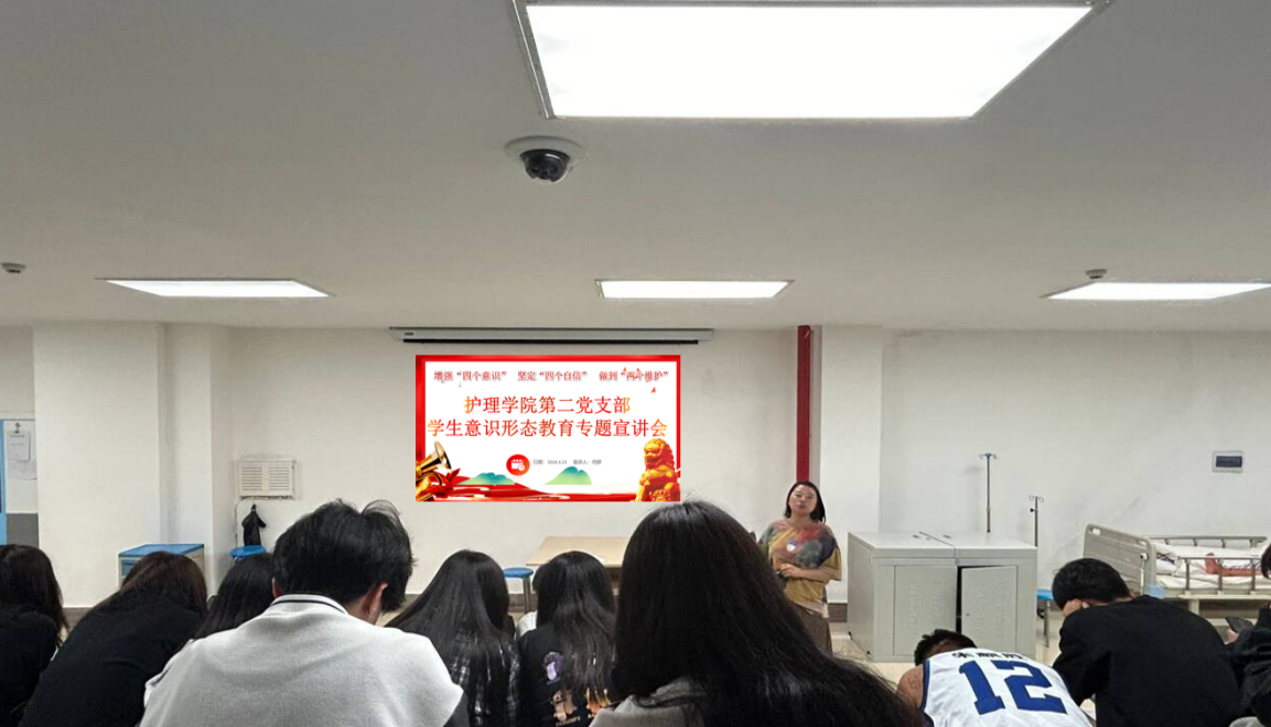 增强“四个意识”坚定“四个自信”做到“两个维护”护理学院第二党支部开展学生意识形态教育专题宣讲会
