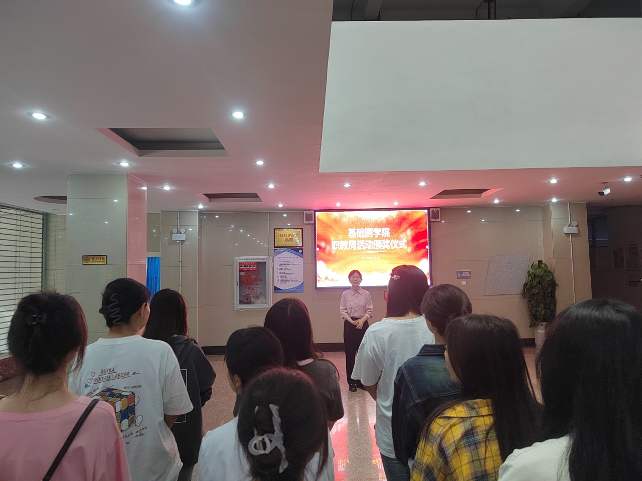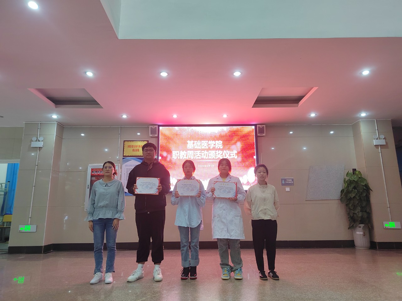 随着职教周活动圆满落幕,6月5日,基础医学院举行了隆重的颁奖仪式。由学院院长马鸣、支部书记李睿雯、教学办和党政办成员、各教研室主任参与,表彰活动中表现优异的医学生们。