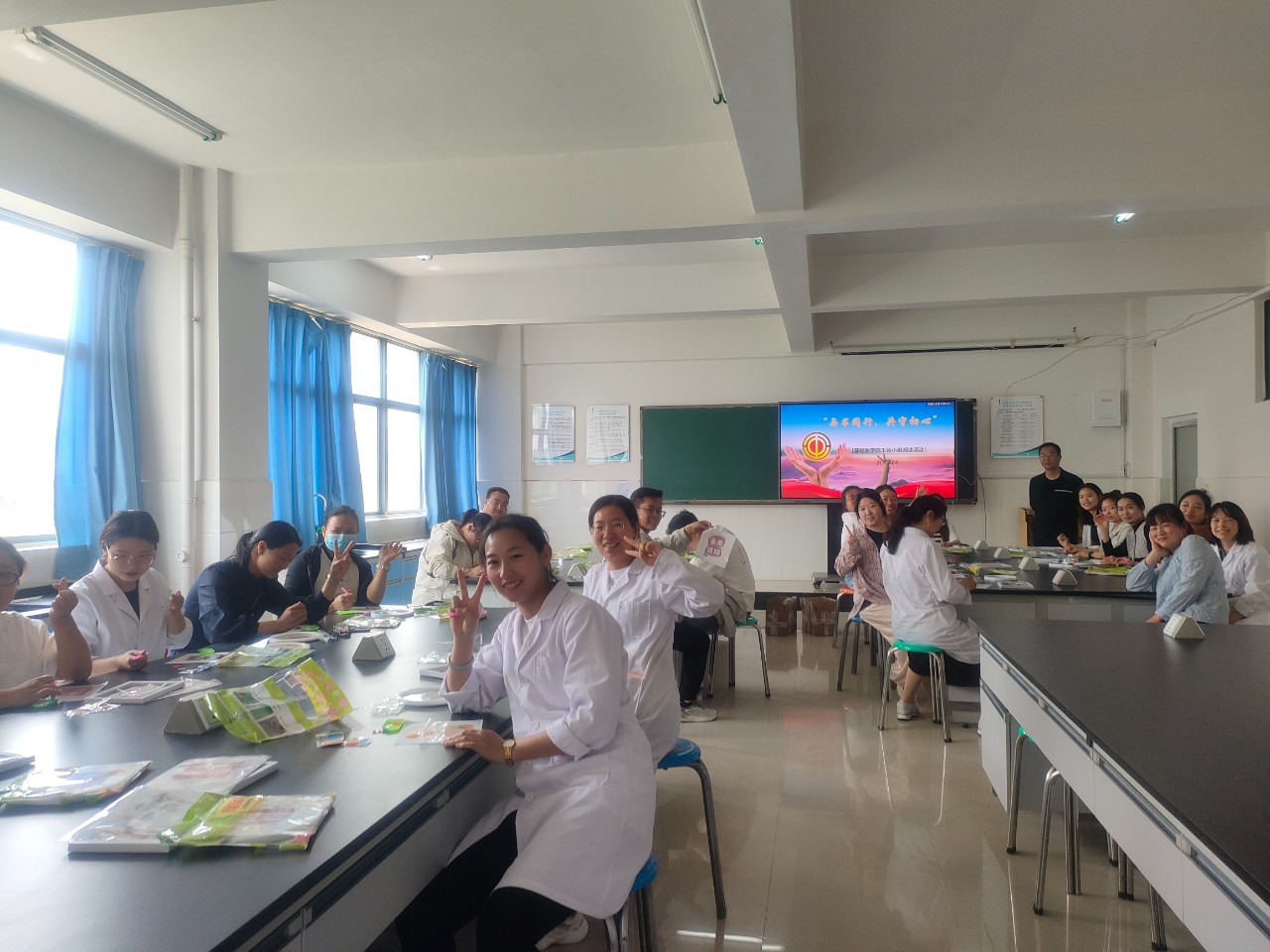 春日暖阳下,教师们选择校园里的一角,阅读自己喜欢的图书,从医学专著到人文社科经典,从心灵成长到历史文学名著,形式多样,内容丰富。