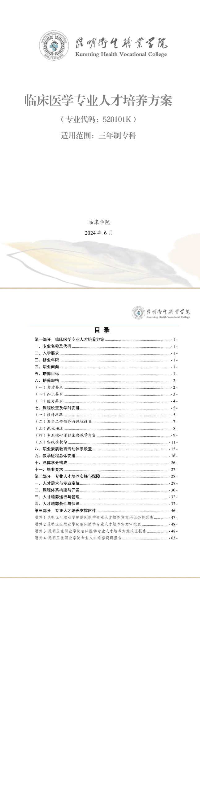beat365平台官方网站三年制专科临床医学专业人才培养方案(供24级三年制专科学生使用)