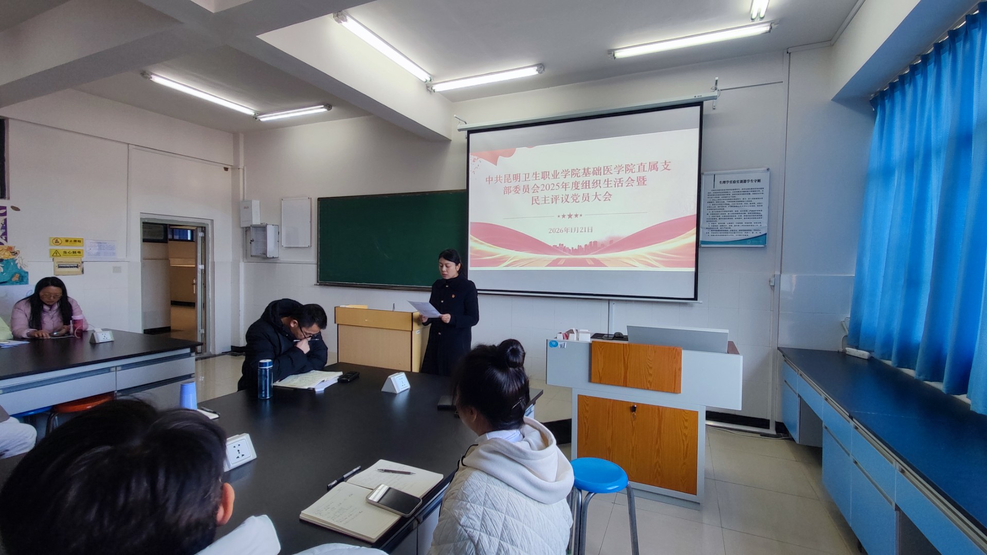 最后,支部书记彭莉同志在总结讲话中指出,本次组织生活会和民主评议党员工作,是支部锤炼工作作风、凝聚干事合力的关键契机。全体党员要以此次会议为新起点,切实把整改成效转化为履职尽责、潜心育人的实际行动,推动党建工作与教育教学、科研等中心工作深度融合、同频共振。大家一致表示,将严格恪守中央八项规定精神,以更务实的作风、更精准的举措、更扎实的行动,在教育教学、学科建设、科研创新等工作中主动担当、争当先锋,充分发挥党员先锋模范作用,切实把党建优势转化为学院发展优势,为基础医学院高质量发展筑牢党建根基,为学院“十五五”发展目标实现贡献党员力量。