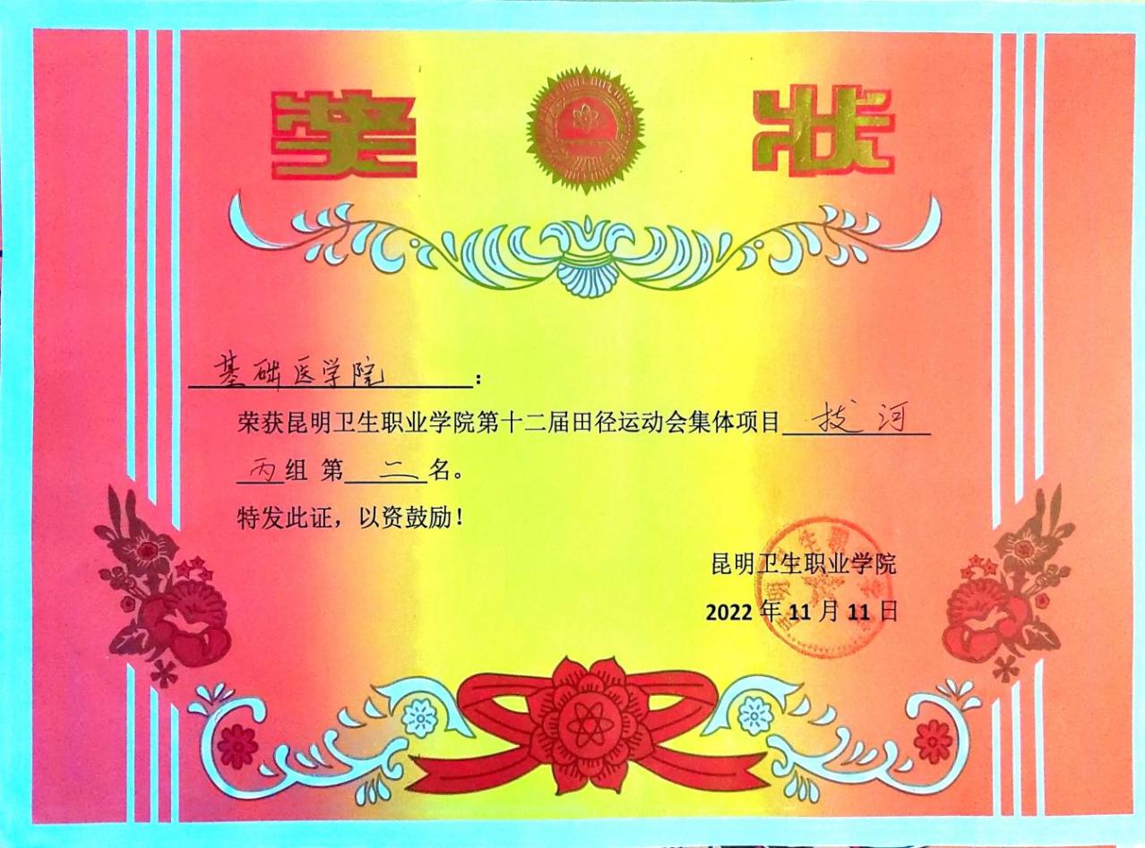 经过激烈的角逐,基础医学院参赛队,不轻言放弃,顽强拼搏,经过不懈努力,从八名开外,拔进前三,最终以第二名成绩结束比赛。