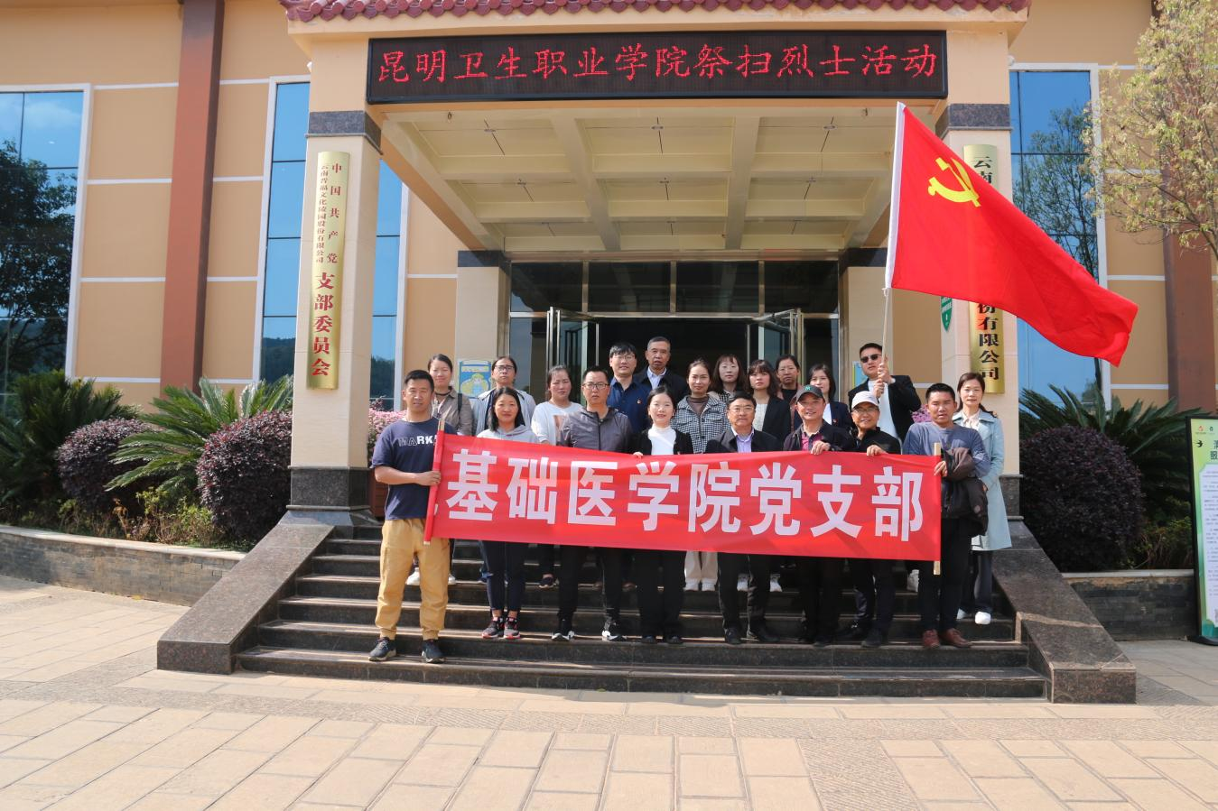 重温历史,悟本思源。3月31日下午,基础医学院教师、党员、入党积极分子,前往晋宁晋福古园爱国主义教育示范基地,组织开展“缅怀革命先烈 坚定理想信念”清明祭扫烈士陵园活动。