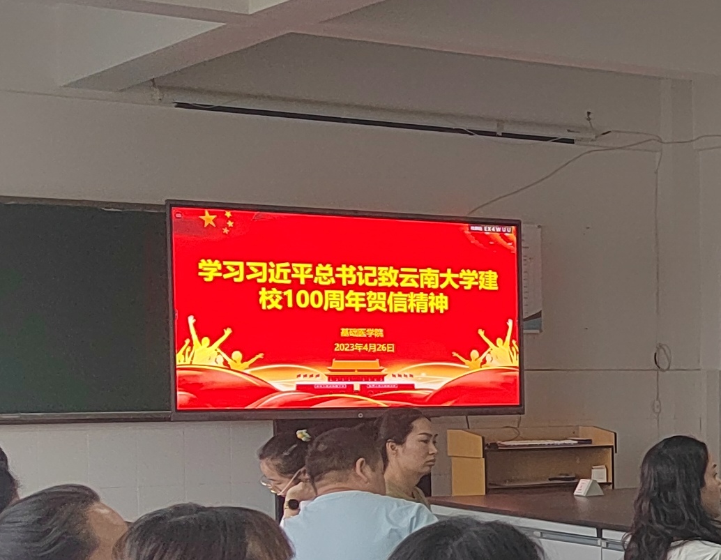 为深入学习贯彻党的二十大精神和习近平总书记致云南大学建校100周年贺信精神,4月26日,beat365平台官方网站基础医学院组织全体教职工深入学习了习近平总书记致云南大学建校100周年贺信精神。基础医学院党支部书记李睿雯主持会议。
