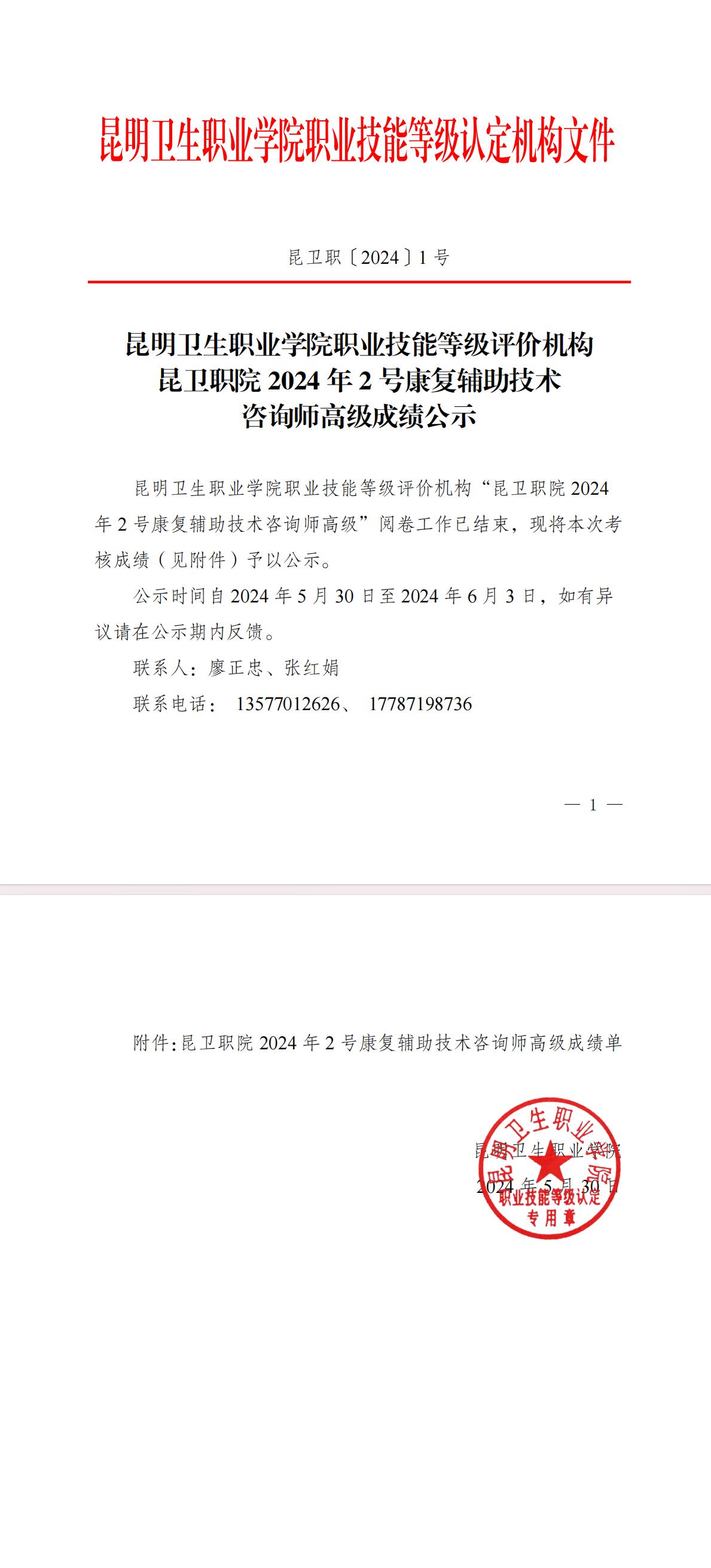 beat365平台官方网站职业技能等级评价机构昆卫职院2024年2号康复辅助技术咨询师高级成绩公示