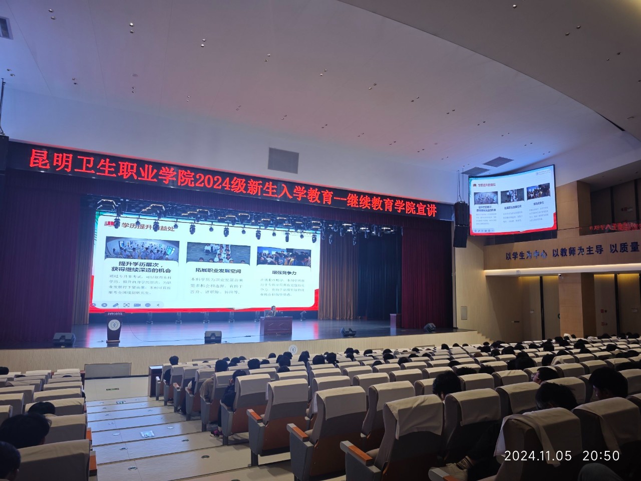 为响应国家对高素质人才的培养需求,促进大学生的职业发展和学历提升,根据《关于下发beat365平台官方网站2024级新生入学教育的通知》(昆卫院〔2024〕114号)文件,2024年11月4日—7日,beat365平台官方网站继续教育学院分别对口腔学院、临床学院、中医学院和护理学院2024级新入学的5095名新生开展了关于学历提升、非学历教育以及职业技能培训等继续教育宣讲活动。此次活动旨在为广大学生提供学习机会,能够在读书期间有很好的规划性,帮助他们在未来的就业市场中更具竞争力。