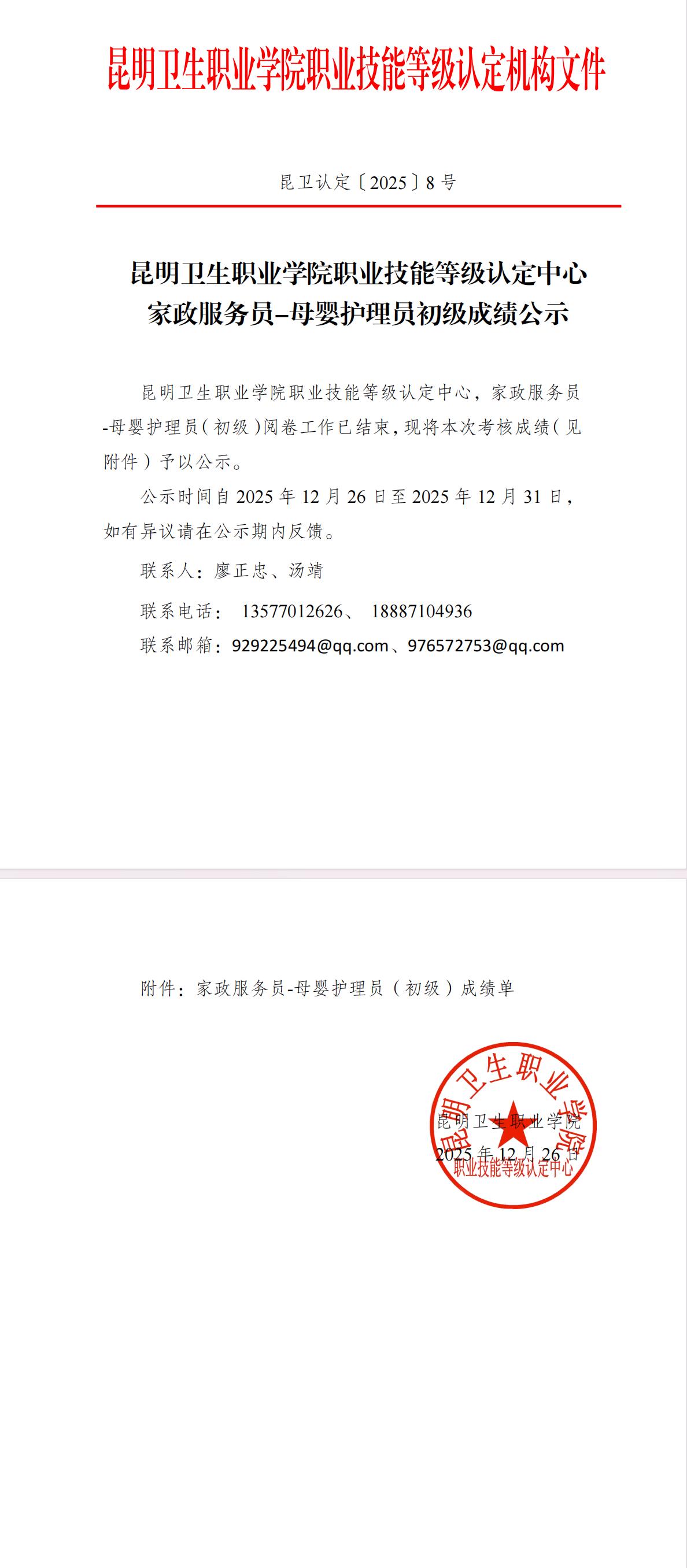 昆卫认定〔2025〕8号-家政服务员-母婴护理员成绩公示.pdf