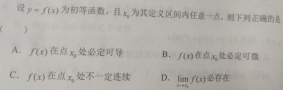 第32题 | 对于函数在处,下列说法正确的是( ) A.,函数左连续 B.,函数右连续 C.,函数必连续 D.,函数必连续 答案:ABD | ||