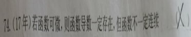 第3题 | 连续一定可导,可导不一定连续,即连续是可导的充分条件 ( ) 答案:× | ||