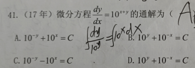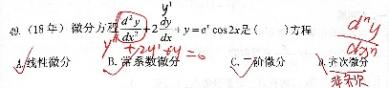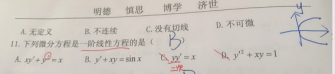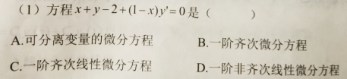 第28题 | 微分方程( ) A.一阶非齐次 B.一阶齐次线性 C.齐次 D.一阶非线性 答案:A | ||