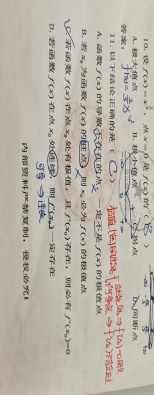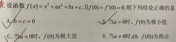 第20题 | 函数 在处取得极大值,则必有( ) A. B. C. D. 答案:D | ||