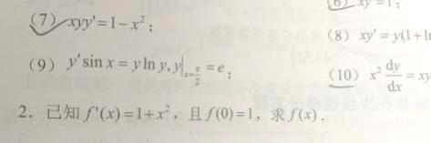 第10题 | 微分方程是可分离变量的微分方程 ( ) 答案:√ | ||