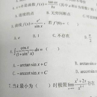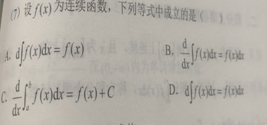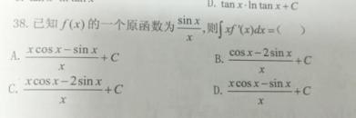 第23题 | 若是的一个原函数,则( ) A. B. C. D. 答案:B | ||