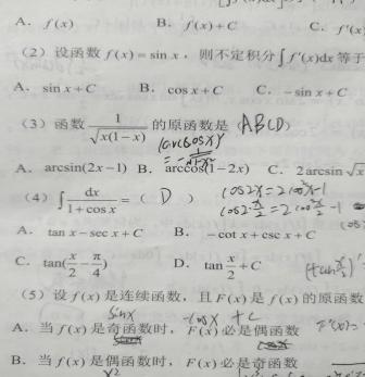 第7题 | 的原函数 ( ) 答案:√ | ||