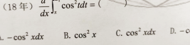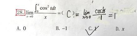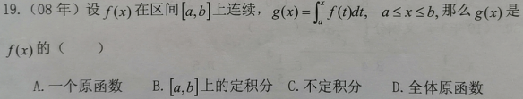 第27题 | 设是的一个原函数,=( ) A. B. C. D. 答案:D | ||