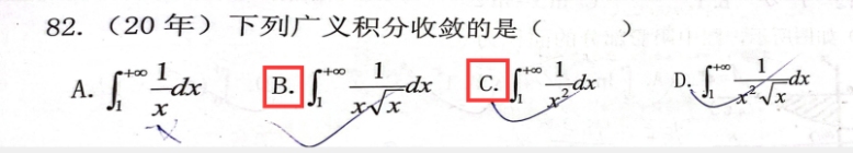 第39题 | 下列广义积分收敛的是( ) A. B. C. D. 答案:AD | ||