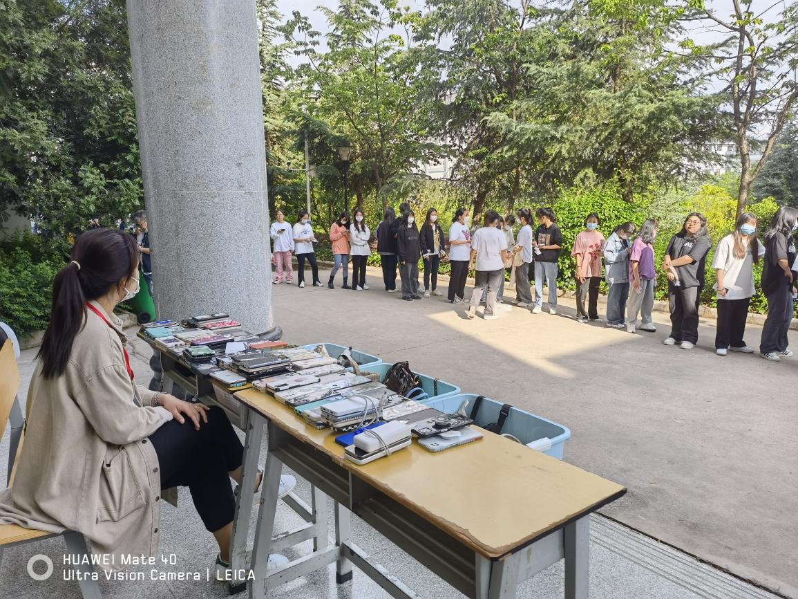 为保证考试公平公正,监考教师对学生是否携带违禁物品进行逐一排查,严禁将手机、背包、教材、资料等一系列与考试无关的物品带入考场区域,并检查学生“三证”,提前杜绝舞弊行为。