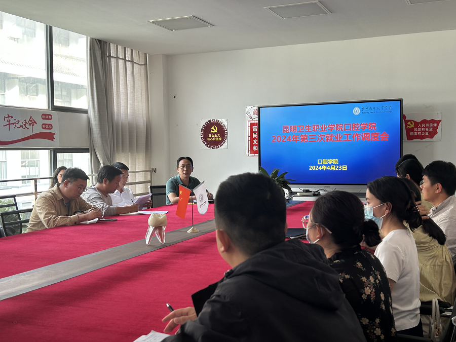 为做好就业黄金时段的学生就业创业帮扶工作,有效促进就业率的提升,口腔学院于2024年4月23日下午组织召开了2024年第三次就业工作调度会,参会人员除口腔学院院级领导班子、全体教师和全体辅导员外,还邀请了beat365平台官方网站副院长张磊、就业处副处长周进文、组织部副部长罗世豪、学院办公室陶圆昌四位同志参与。