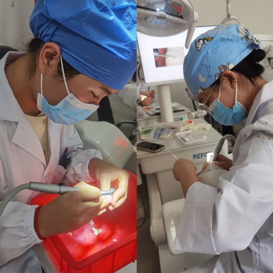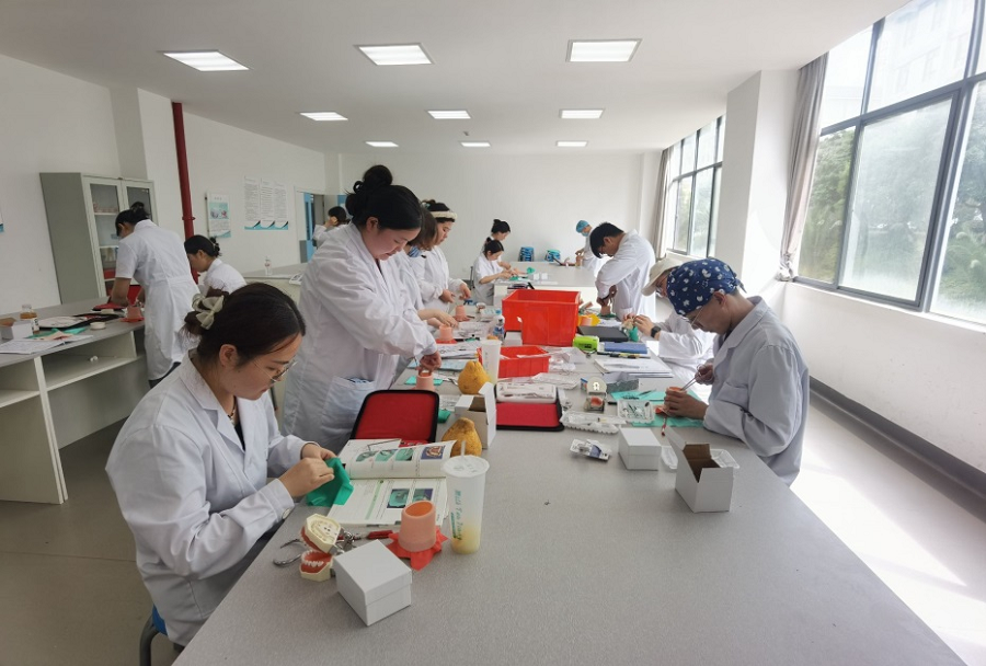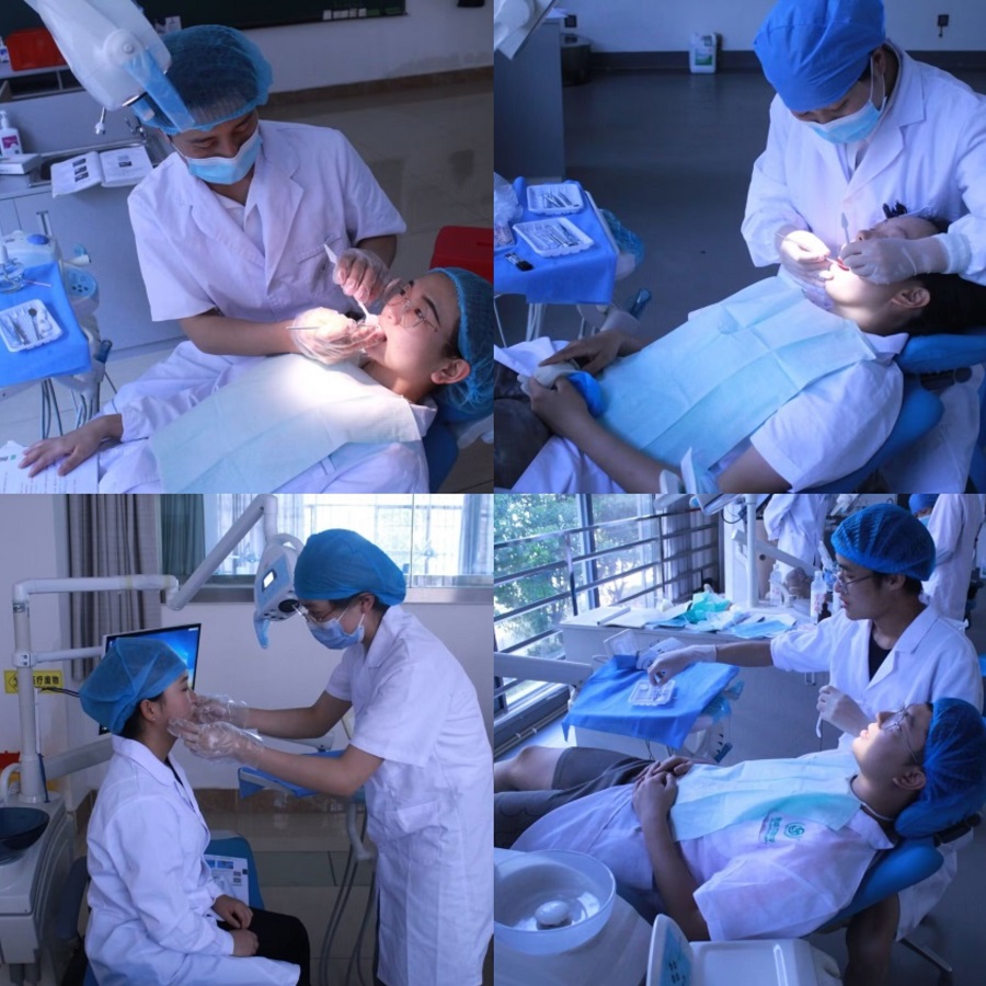 口腔学院精心组建教学经验和执考经验丰富的培训师资团队,做好各项培训筹备工作,多次组织开展集体备课,统一技能操作标准和明确组织形式。培训内容根据考试大纲制定,涵盖无菌操作、一般检查、特殊检查、检查表的填写、心肺复苏术、吸氧术、血压测量、麻醉、拔牙、II类洞制备、开髓术、铸造金属全冠牙体预备、橡皮障隔离术、口内缝合术、脓肿切开引流、取模、窝沟封闭术、龈上洁治术、病史采集、巴氏刷牙法、牙线的使用、病例分析等项目。