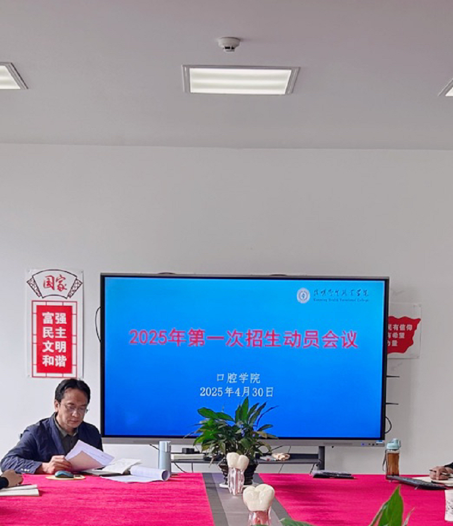 为落实学院2025年招生工作实施方案的通知要求,口腔学院于2025年4月30日组织全体教师在口腔学院311会议室召开2025年第一次招生工作会议。本次会议旨在“3+1+2”新高考背景下,全体必须加强招生宣传,以提升社会认知、应对生源竞争、消除信息差、改变偏见、确保合规招生。通过精准、透明的宣传策略,让更多考生和家长了解职业教育的价值,帮助考生选择适合自身发展的升学路径。