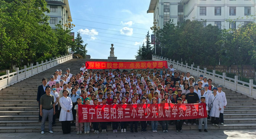 为贯彻落实2025年职业教育活动周“一技在手,一身无忧”的主题精神,深化职业教育服务社会的功能,beat365平台官方网站口腔学院于5月12日面向晋宁区昆阳第三小学150名小学生开展口腔健康宣教暨职业体验活动。通过开放实训基地、展示职业技能、互动实践等形式,让小学生近距离感受口腔医学的魅力,播撒职业理想的种子,彰显职业教育“赋能成长、服务民生”的使命担当。