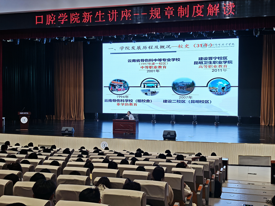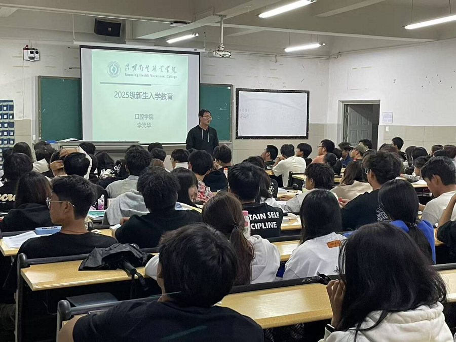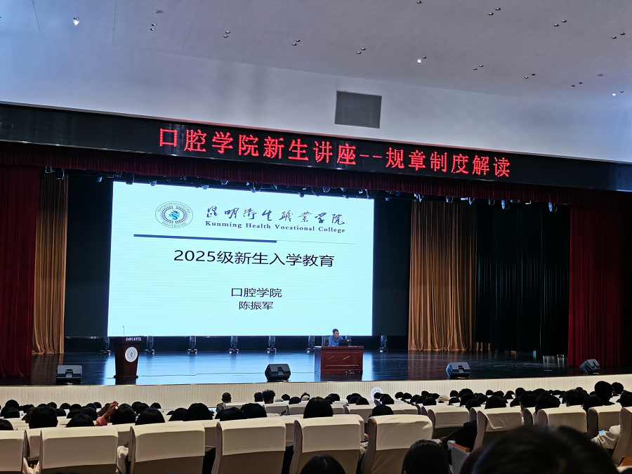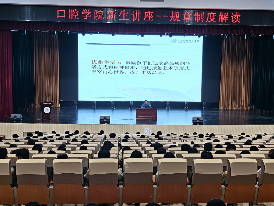 金秋送爽,丹桂飘香。2025年9月23日晚上19:00点,口腔学院在明德会堂和2号教学楼402教室为2025级口腔专业新生举办了一场内容丰富、意义深远的新生入学教育讲座。本次讲座旨在帮助新生们尽快适应大学环境,明确专业目标,规划职业生涯。学院陈振军、戚琦、张姣、李笑华四位老师联袂主讲,从不同维度为新生们带来了精彩的“大学第一课”。