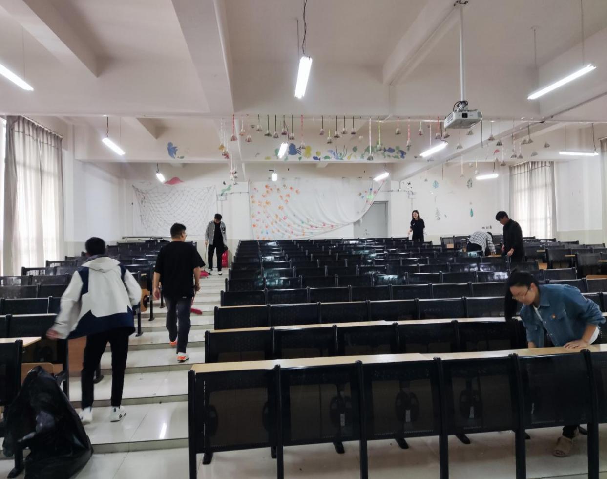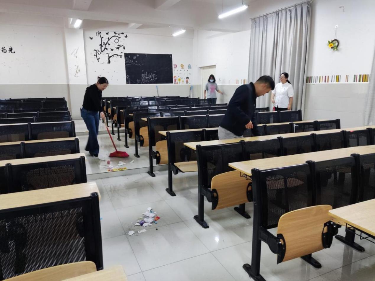 以临床学院党总支下属第一、第二、第三党支部为单位,党员教师们分为三个小组,各支部书记分别带领小组成员前往分配好的教室及教学楼周边责任区进行卫生清洁,检查教室门窗、多媒体和桌椅等基础设施。各小组分工明确、齐心协力、配合默契,党员教师们以高昂的情绪和饱满的热情,用实际行动践行党员先锋精神,经过党员们的辛勤劳动,1号教学楼所有教室及周边环境面貌焕然一新,不仅营造了良好的学习、工作、生活环境,更用实际行动诠释了党员的初心使命。