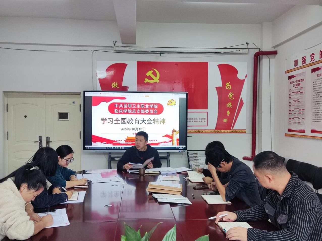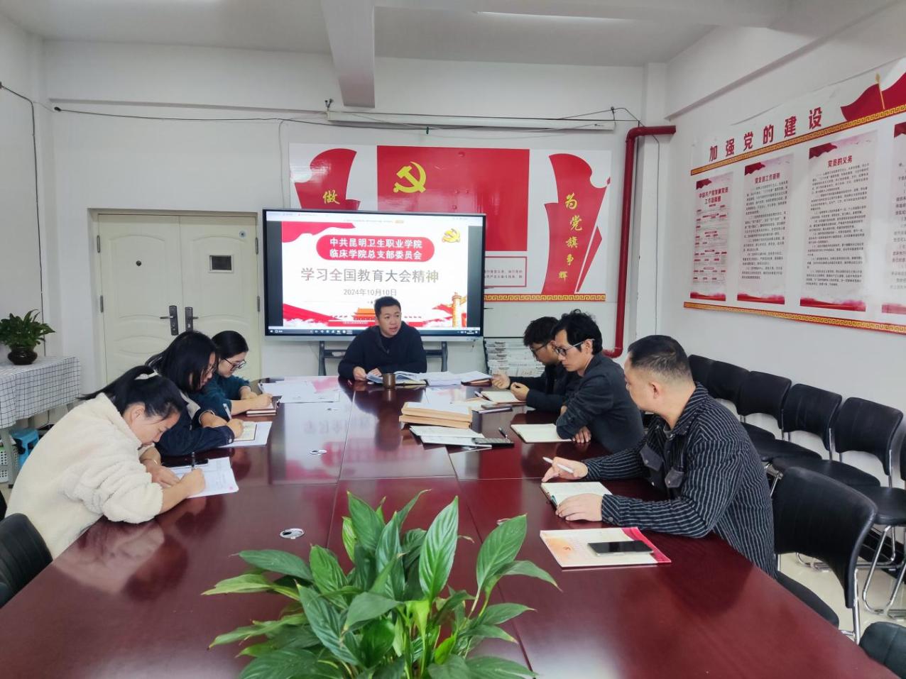 为深入贯彻学习习近平总书记在全国教育大会上的重要讲话精神,2024年10月10日上午,临床学院党总支在临床学院405党员活动室组织开展习近平总书记在全国教育大会上的重要讲话精神专题学习,临床学院第一支部书记余建坤、临床学院第二支部书记杨林杰、临床学院第三支部书记陶敬磊及全体支委委员参加会议。本次会议由临床学院党总支书记王正安同志主持。