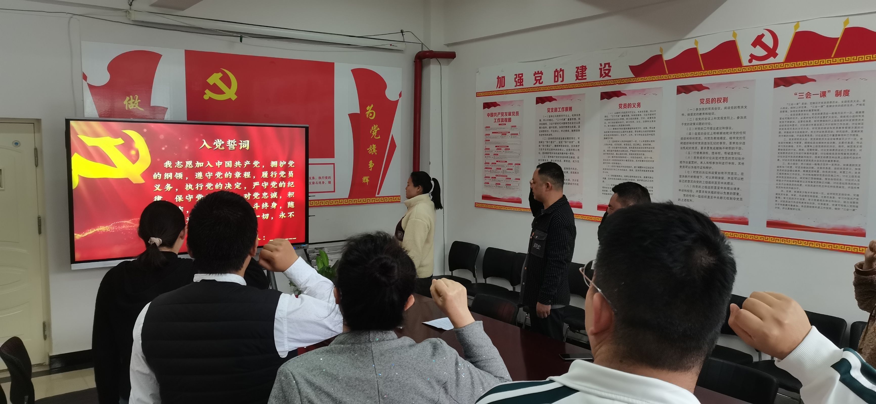 最后,临床学院第一党支部统战委员敖宇蓉同志带领党员同志重温入党誓词,旨在增强党员党性,唤醒党员承诺,提升党员使命感。