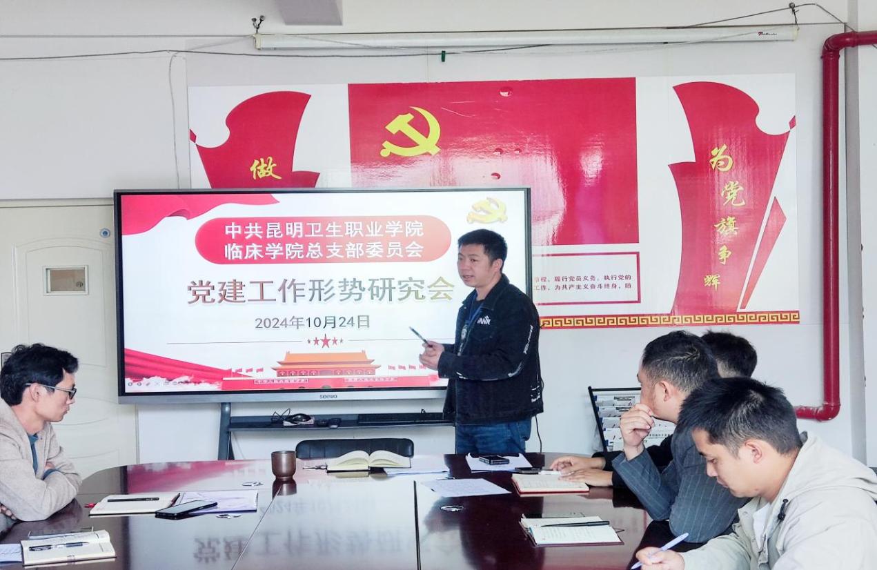 为全面总结回顾临床学院党总支党建工作情况,部署接下来的党建重点工作,推动党建融入教育教学、学生管理之中,2024年10月24日上午,临床学院党总支在临床学院405党员活动室召开了党建工作研究专题会议。临床学院第一支部书记余建坤、临床学院第二支部书记杨林杰、临床学院第三支部陶敬磊及支委委员参加会议,会议由临床学院党总支书记王正安主持。