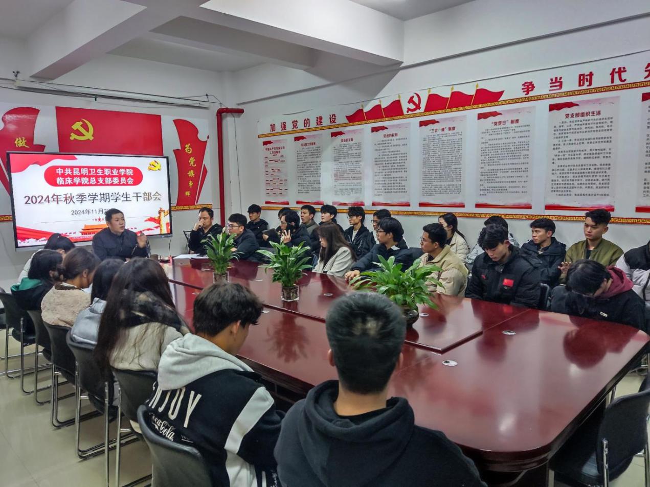为深入学习贯彻落实党的二十届三中全会精神,进一步加强新时代爱国主义教育,激发学生的爱国之心、报国之情、强国之志,2024年11月28日,临床学院党总支于临床学院405党员活动室组织召开2024年秋季学期学生干部会。临床学院党总支书记王正安,临床学院第一党支部书记余建坤、第二党支部书记杨林杰、第三党支部书记陶敬磊及40余名学生干部参加,会议由王正安书记主持。