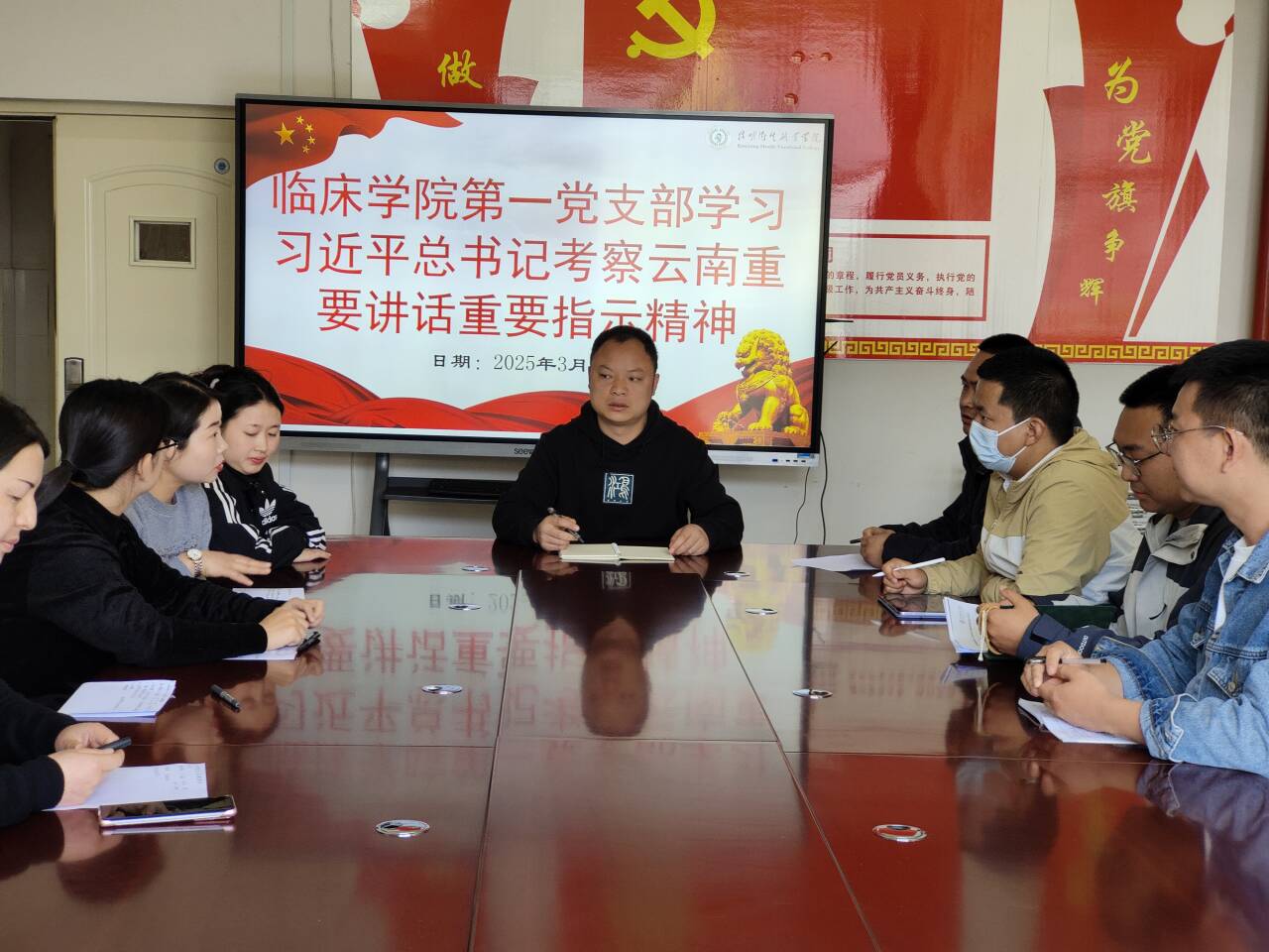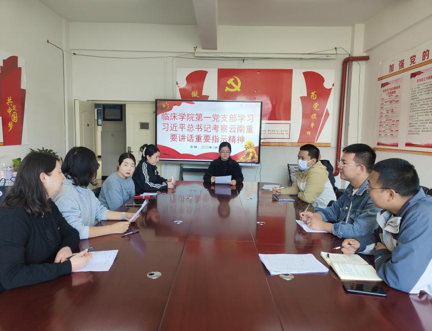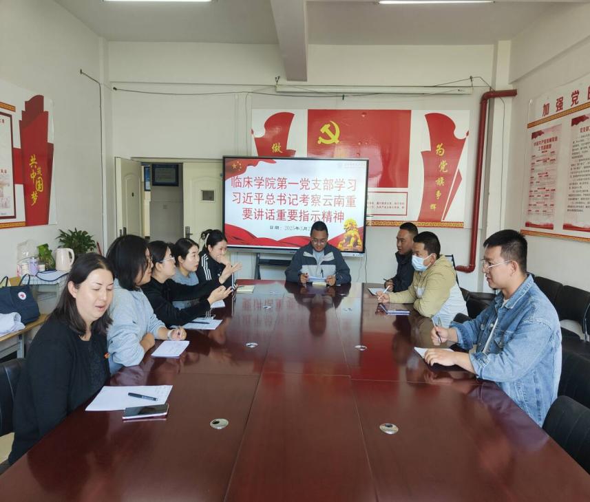 为深入贯彻落实习近平总书记考察云南重要讲话重要指示精神,进一步凝聚思想共识、强化使命担当,临床学院第一党支部于2024年3月27日在临床学院405党员活动室组织全体党员召开专题学习会议,通过“专题领学、交流研讨、实践动员”相结合的方式,推动习近平总书记重要讲话精神在医学教育、医疗服务中落地见效。