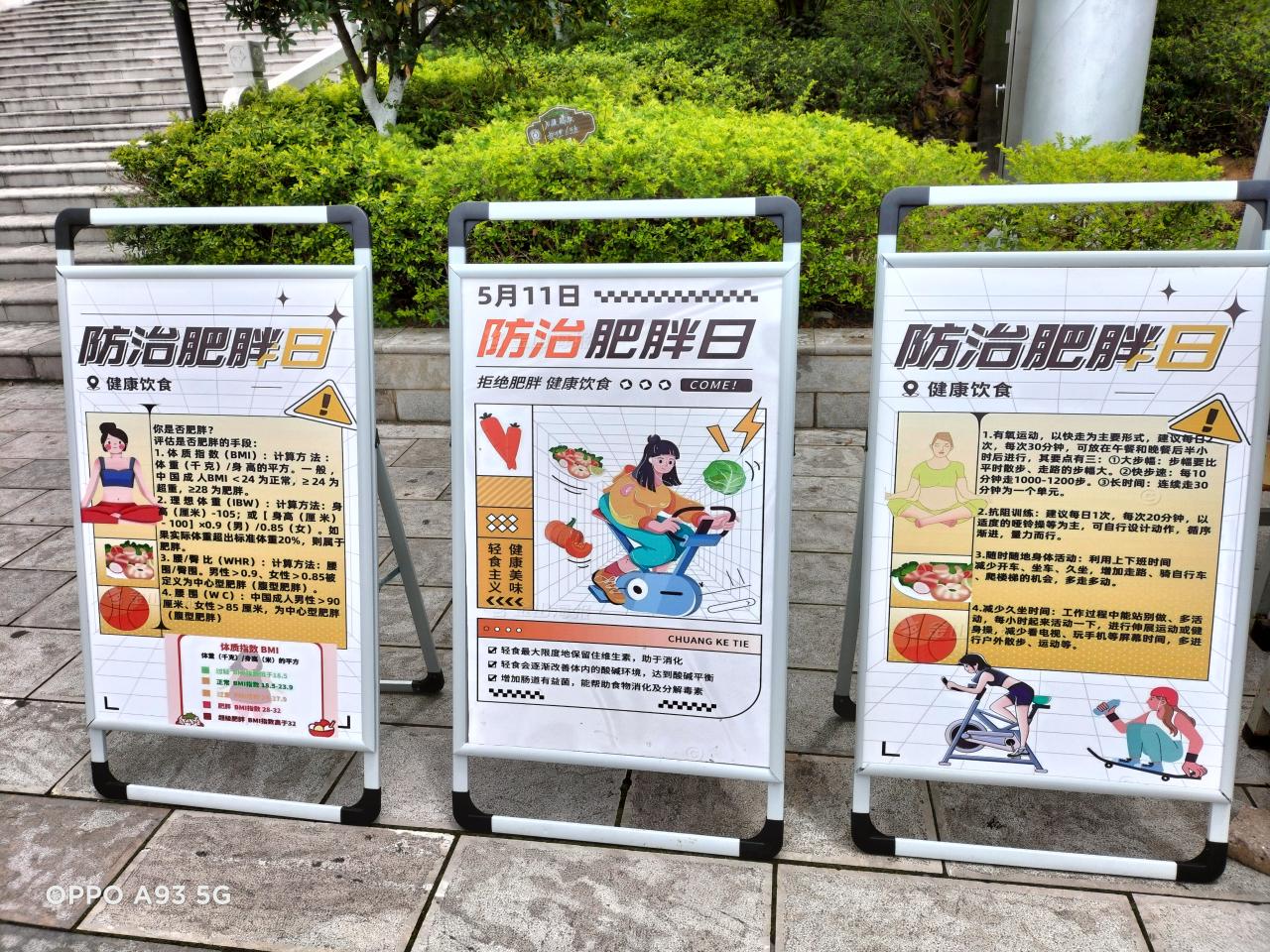 2022年5月9日至5月13日,在“世界防治肥胖日”(5月11日)、“世界脊柱健康日”(5月21日)等到来之际,临床学院组织临床学院大学生自治管理委员同学在校园内开展为期5天的校园防病教育活动,通过宣传卫生健康知识,提高广大师生对疾病预防与控制的意识和能力。