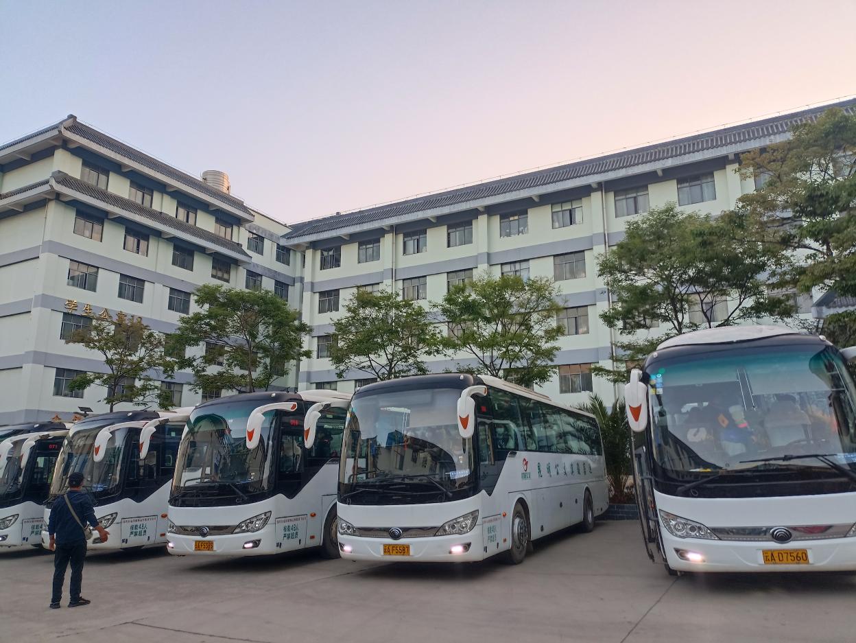 出发当天,天还没亮,同学们就把行李收拾完毕,迎着朝阳踏上了前往宣威市云峰医院的大巴,开始为期2个月的见习生活。