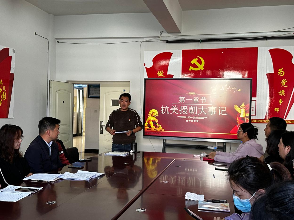 雄赳赳、气昂昂,跨过鸭绿江,73年前的今天中国人民志愿军赴朝鲜后的首战打响,由此揭开抗美援朝战争的序幕,在抗美援朝这场用鲜血铸就的立国之战中英雄的志愿军奏响了一曲彪炳史册的赞歌。为深入学习贯彻党的二十大精神,学习习近平新时代中国特色社会主义思想;加强党员的党性修养,学生的思想道德建设,提高大学生的政治觉悟;提高党员的政治觉悟,激发党员、学生的爱国情怀。临床学院第一党支部于2023年10月25日组织师生开展了召开主题班会、支部书记讲党课、观看红色电影等纪念抗美援朝系列活动。
